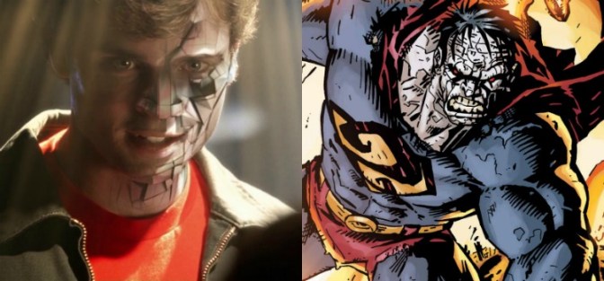 Bizarro is a Kryptonian genetic experiment banished to the Phantom Zone. It bonded with Clark’s DNA and became a dark copy of him. It soaked up his emotions, however, giving the creature some humanity. Another very loose adaptation.